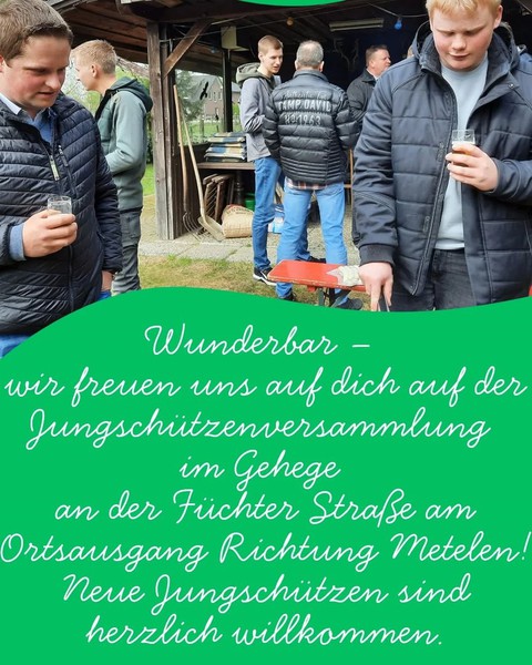 Darüber hinaus freuen wir uns auf EUCH alle, die Ihr ebenfalls zu unseren Jungschützen gehören möchtet. Ihr seid herzlich zur Jungschützen-versammlung eingeladen.