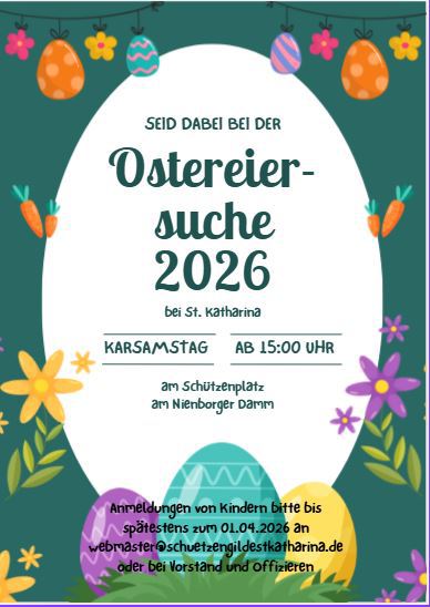 Herzlich eingeladen sind alle Mitglieder mit Familie, Freunde und diejenigen, die einfach mal Katharinenluft schnuppern und mit uns Ostereier suchen möchten!