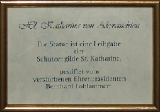 Aus dem Nachlass von Bernhard Lohlammert wurde der Gilde eine St. Katharinen Statue übergeben. Sie fand in der St. Georg Kirche ein neues Zuhause, bleibt aber Eigentum der Gilde. Sie wurde noch vor dem 50-jährigen Jubiläum der St. Georg Kirche.