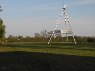 Der nächste Hingucker zum Jubiläum ist fertig. Lange wurde darüber gesprochen, seit Ostersamstag steht die Pyramide(Dreibein) endlich. Eine tolle Leistung der Abteilung Festbögen vom Festausschuss.