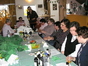 Die Frauen aus der Gerdingseite haben die ersten (geschätzten) 1000 Rosen für den Festbogen gebunden. Im Partyraum der Familie Hindering verbrachten die Frauen, alt und jung, einen schönen Tag. Allen war die Vorfreude auf das anstehende Jubiläum anzumerken.